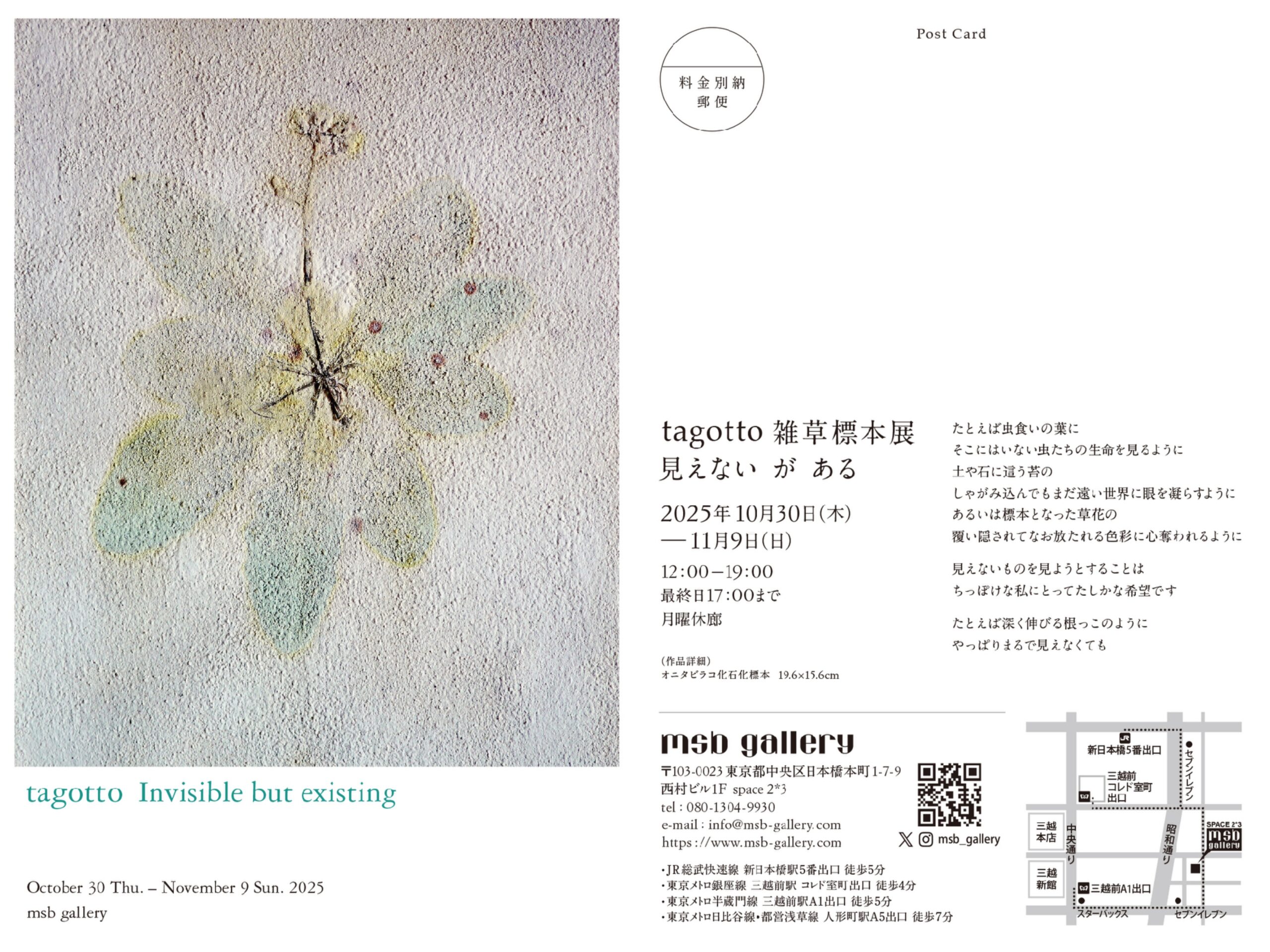 10月30日(木)より、日本橋のmsb galleryさんにて展示会がスタートします。